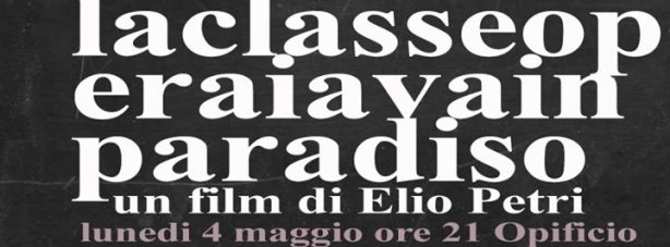 Il nuovo ciclo, concentrato sul Lavoro e sulle sue sfaccettature, ci vede aprire con il film cult che fece vincere a Petri la Palma d'Oro a Cannes nel 1972. Imperdibili, per chi non avesse visto il film, le interpretazioni di Gian Maria Volonté (che appena un anno prima interpretava, sempre per Petri, l'Indagine su un cittadino al di sopra di ogni sospetto) e di Mariangela Melato.